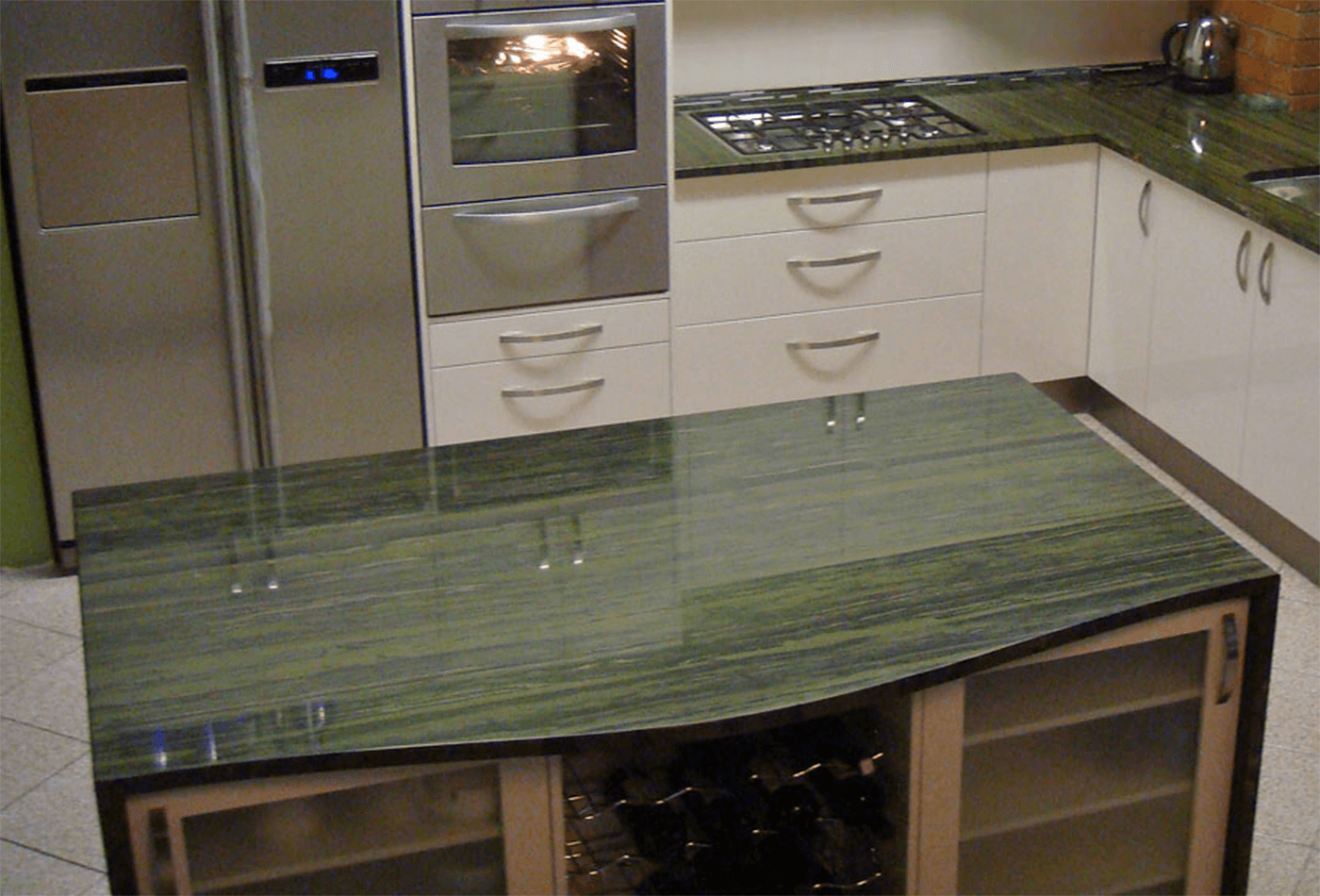 As Verde Bamboo Granite is formed from intense heat and pressure of natural forces under the earth's crust, the granite worktop fabricated from it is highly resistant to heat. In fact, a granite worktop is one of the best heat-resistant countertop options, available on the market. Hot objects directly from the oven will not cause immediate stains and scratches. However, prolonged keeping should be avoided with heat coasters and trivets to ensure the best look for worktops.