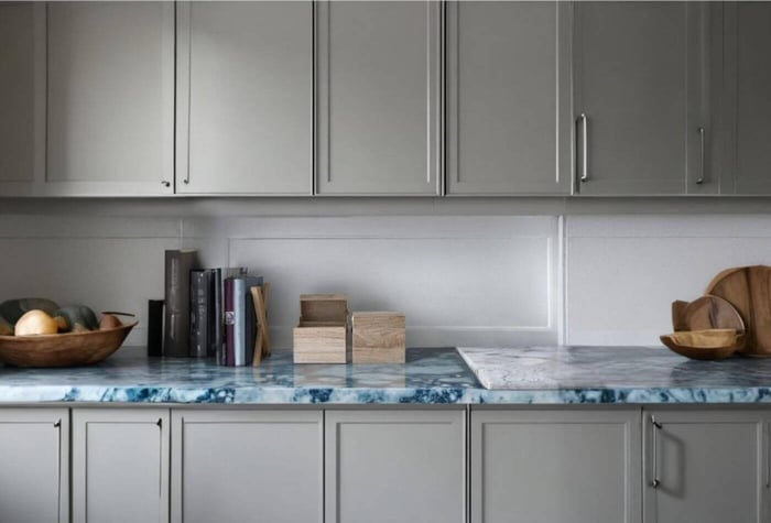 13. Smoke Quartzite with Blue Cabinets