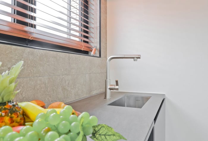 Corner sinks can cause splashbacks on surrounding surfaces, so consider splash guards or materials that are easy to clean. This keeps the area looking tidy and low-maintenance.