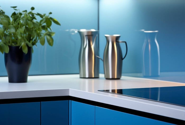 In the UK, trending splashback ideas include high-gloss finishes, pastel shades, and textured glass. Natural stone and marble-effect quartz are also popular choices for those looking to achieve a luxury kitchen aesthetic without the high maintenance.